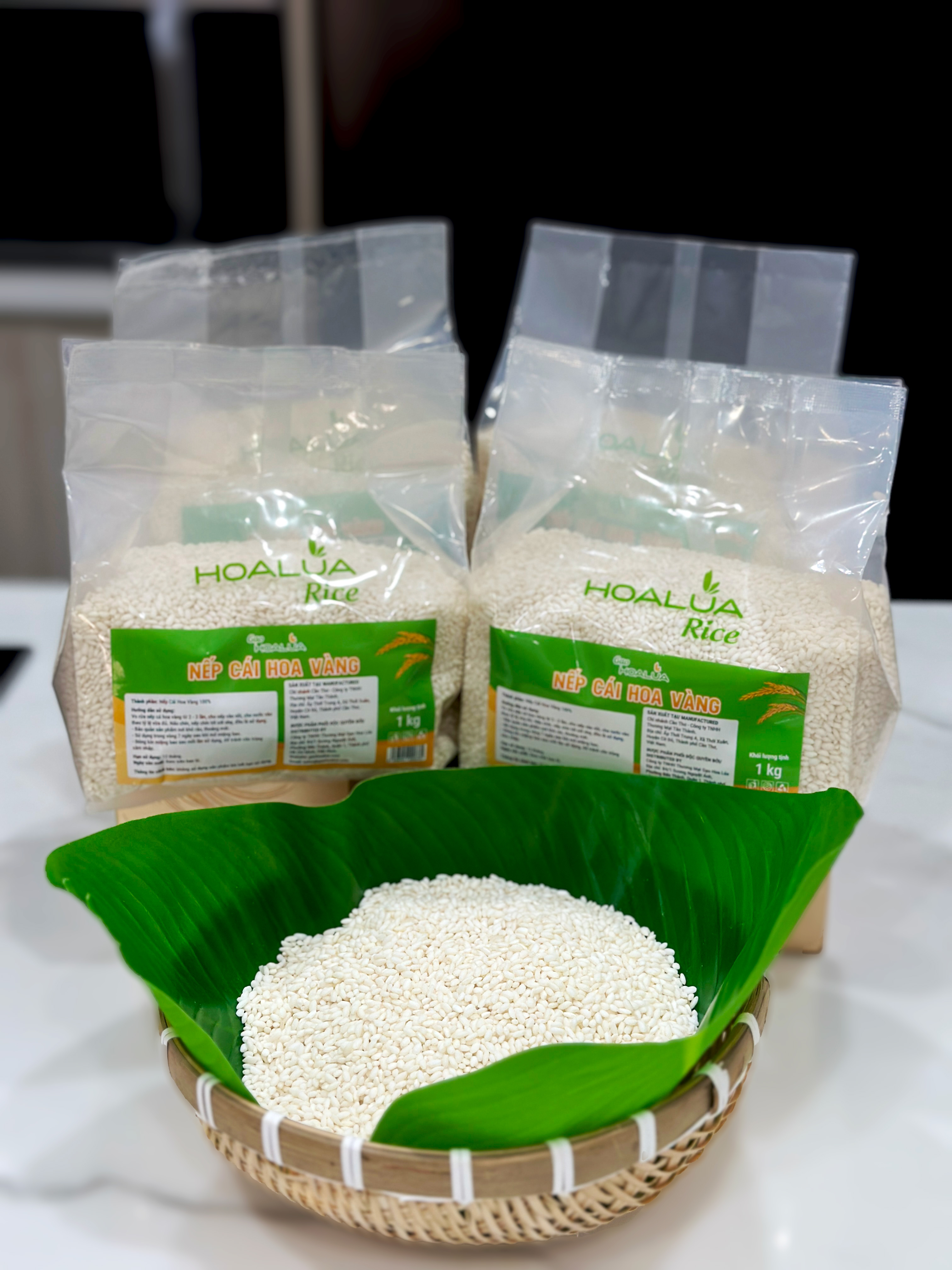 ĐẶC TÍNH: Nếp Cái Hoa Vàng là giống nếp đặc sản lâu đời của vùng đồng bằng Bắc Bộ, còn được gọi là Nếp Bắc. Nếp Cái Hoa Vàng của Hoa Lúa được trồng tại vùng đồng bằng Sông Cửu Long. Hạt to, tròn, khi nấu cho cơm xôi dẻo mềm, không nhão, không khô. Vị ngọt nhẹ, thơm hương tự nhiên, thích hợp để nấu các món truyền thống như xôi, chè, bánh chưng, bánh tét, cơm rượu...